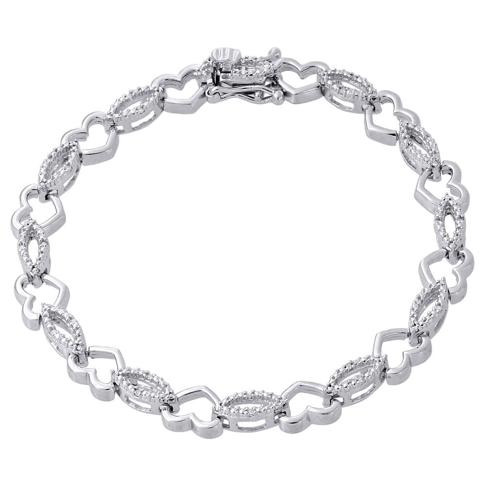 (10 grams of .925 Sterling Silver | 0.08 total carat of white diamonds; 7" inches long & 7mm wide | I1 - I2 Clarity Diamond | H - I Color | Ladies Heart Shaped Diamond Bracelet)