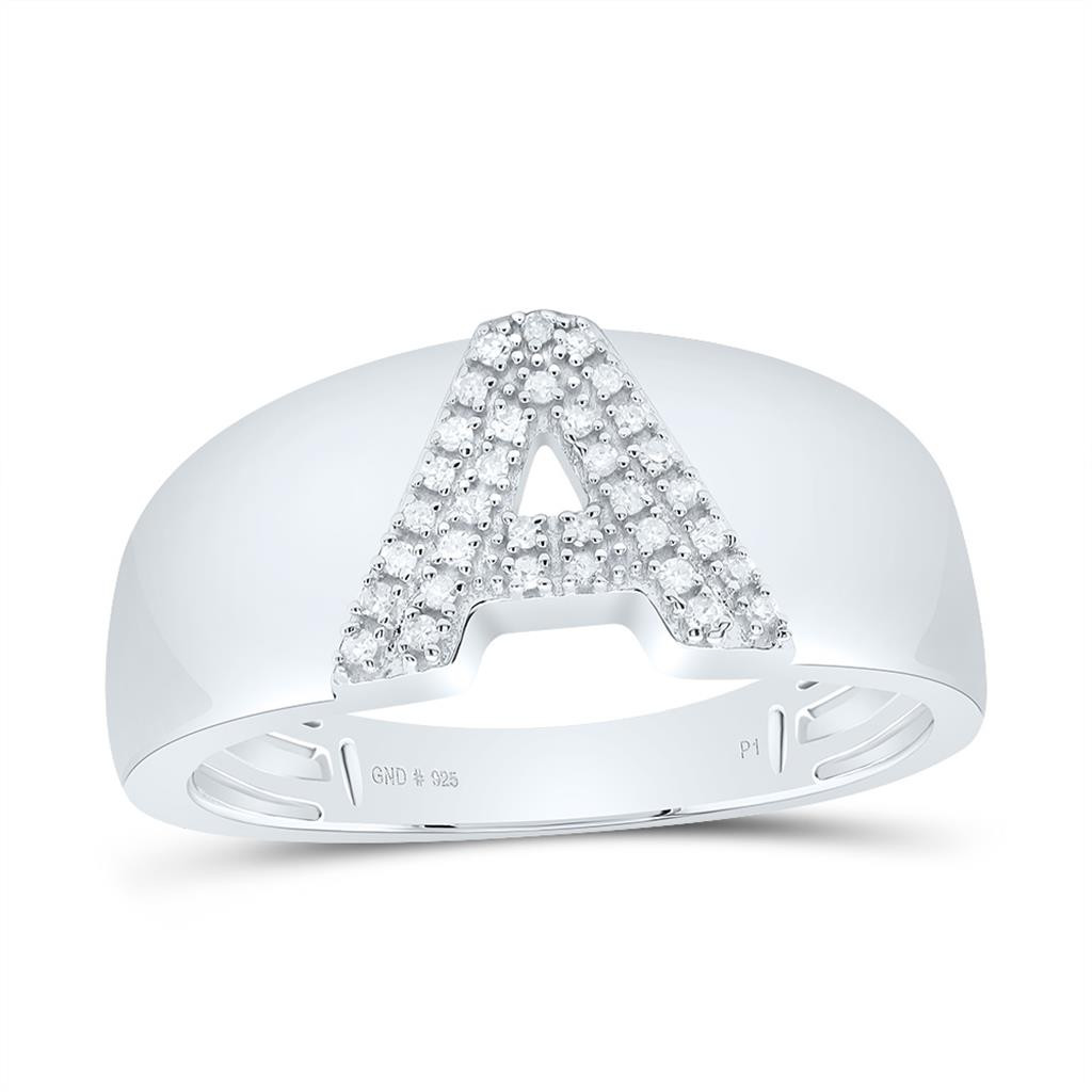 - .925 Sterling Silver Diamond Women's Block Letter A Initial Band Ring 1/10 CT