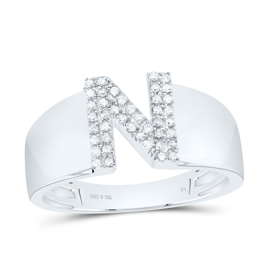 - .925 Sterling Silver Diamond Women's Block Letter N Initial Band Ring 1/10 CT