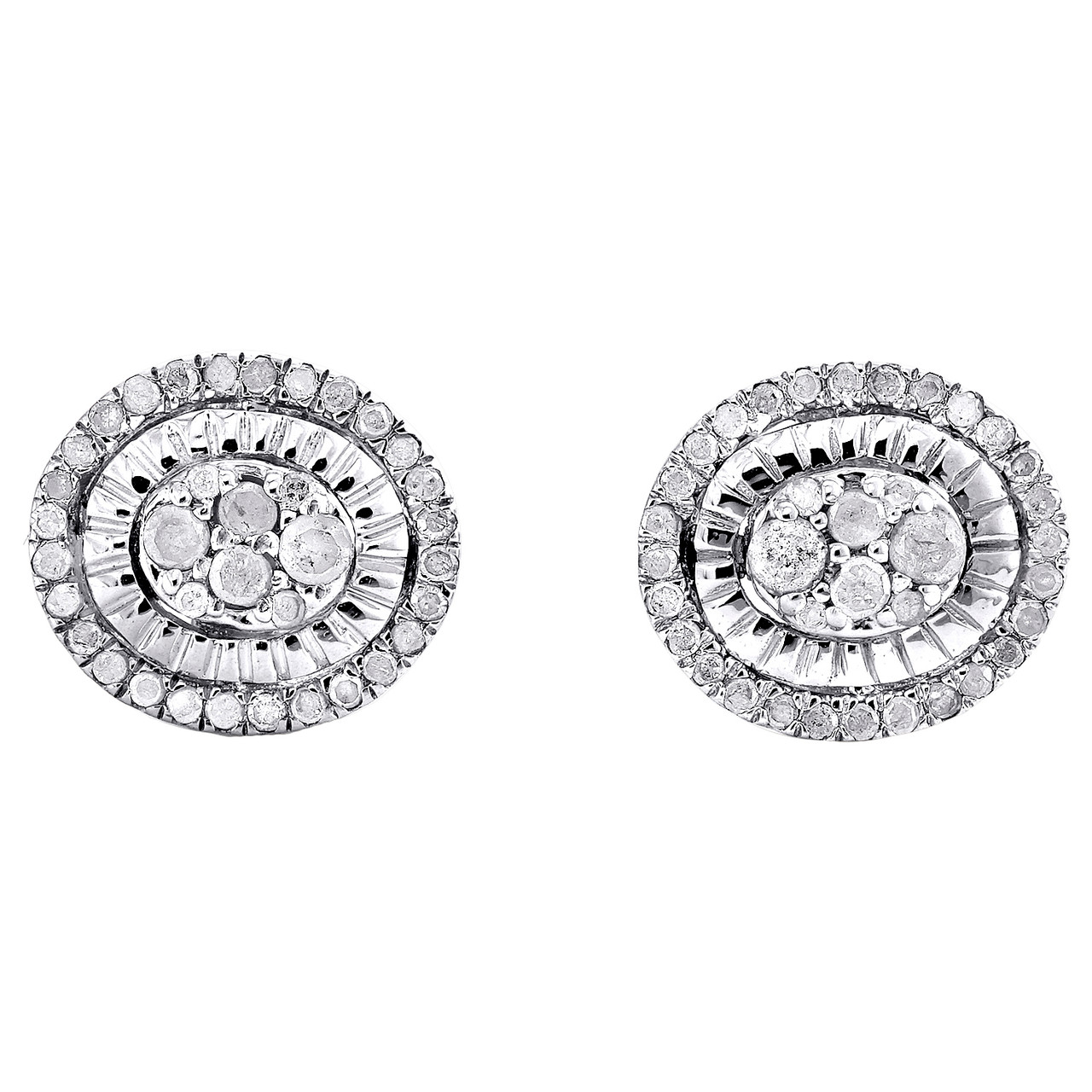 (1.7 gr. of .925 Sterling Silver | Total Carat Weight: 0.33 ct. t.w. of White Diamonds | Width: 8mm | Thickness: 4mm | Clarity: I1 - I2 | Color: H - I | Ladies Genuine Round Diamond Oval Shaped Frame Statement Halo Studs Miracle Set Earrings)