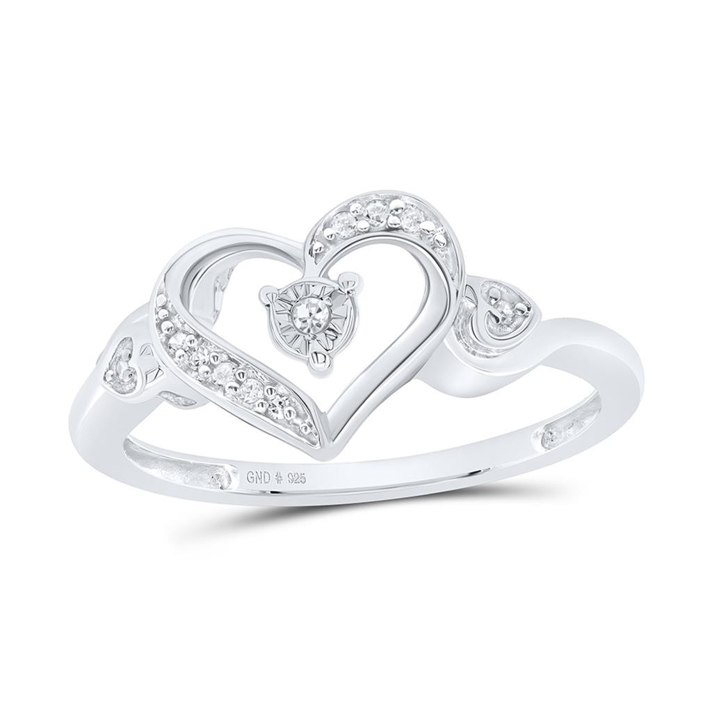 - .925 Sterling Silver Real Round Diamond Women's Swirling Open Heart Ring 1/20 CT