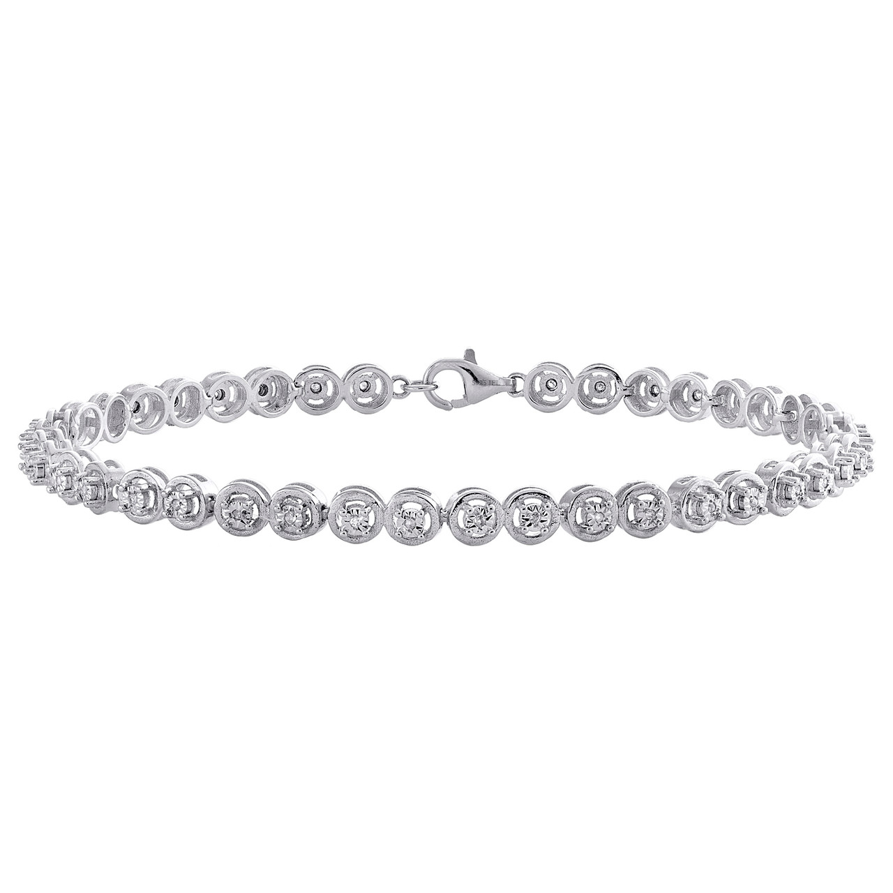 - 1 Row Sterling Silver Round Diamond 4.25mm Miracle Plate Tennis Bracelet 1/4 CT.