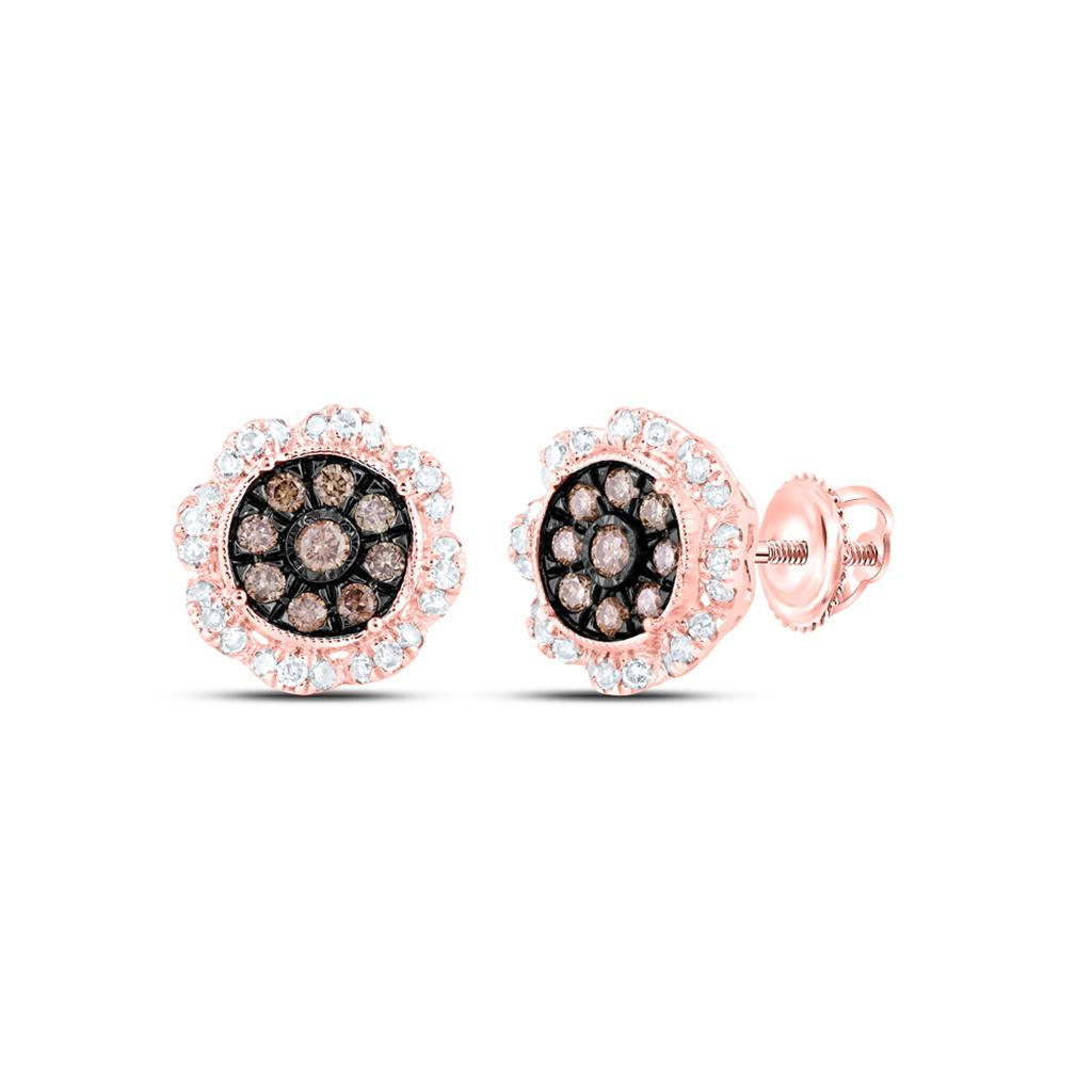- 10K Rose Gold Brown Diamond Women's 11mm Cluster Flower Stud Earrings 5/8 CT