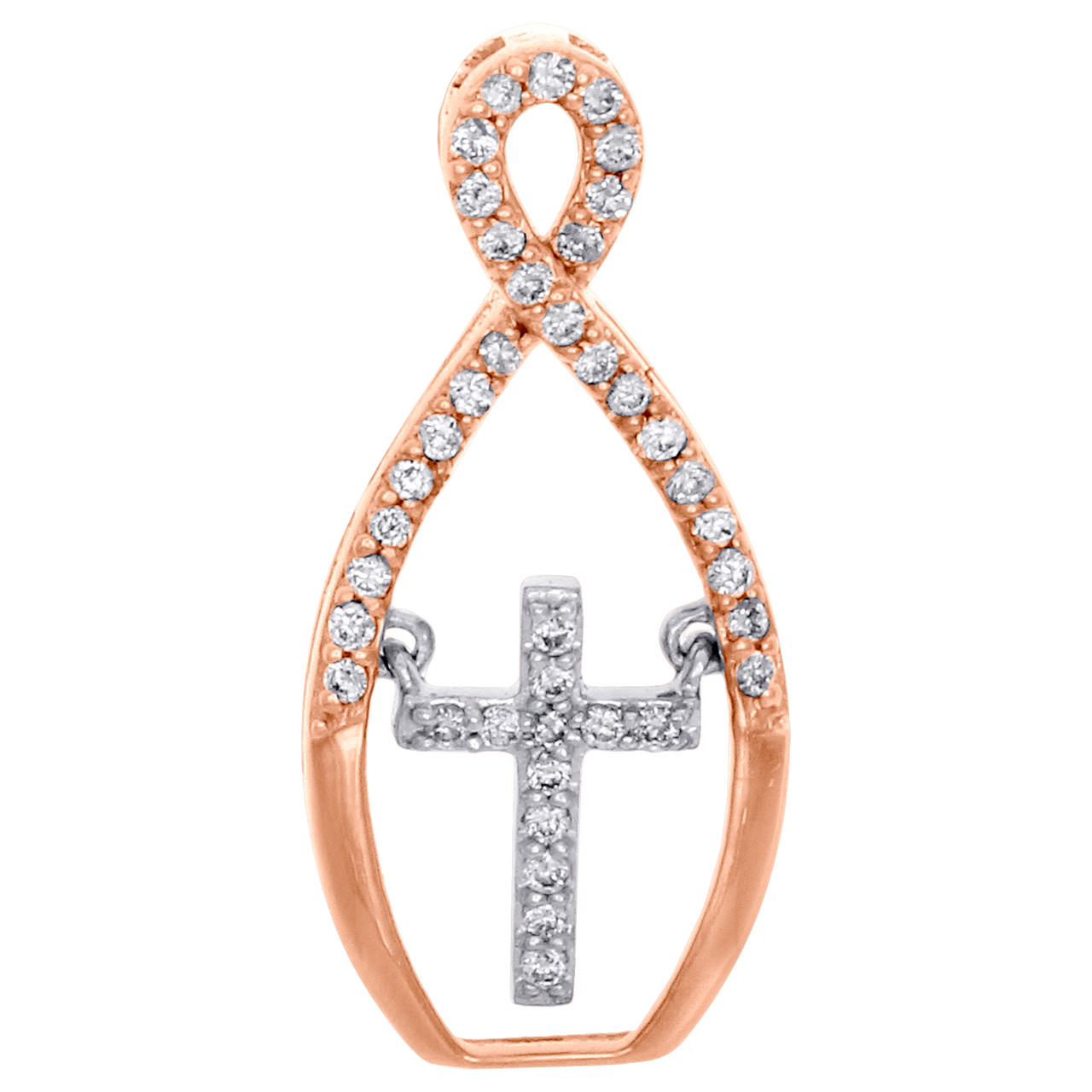 10K Rose Gold Diamond Dancing Cross Charm Infinity Pendant 0.85" Long 0.17 CT.