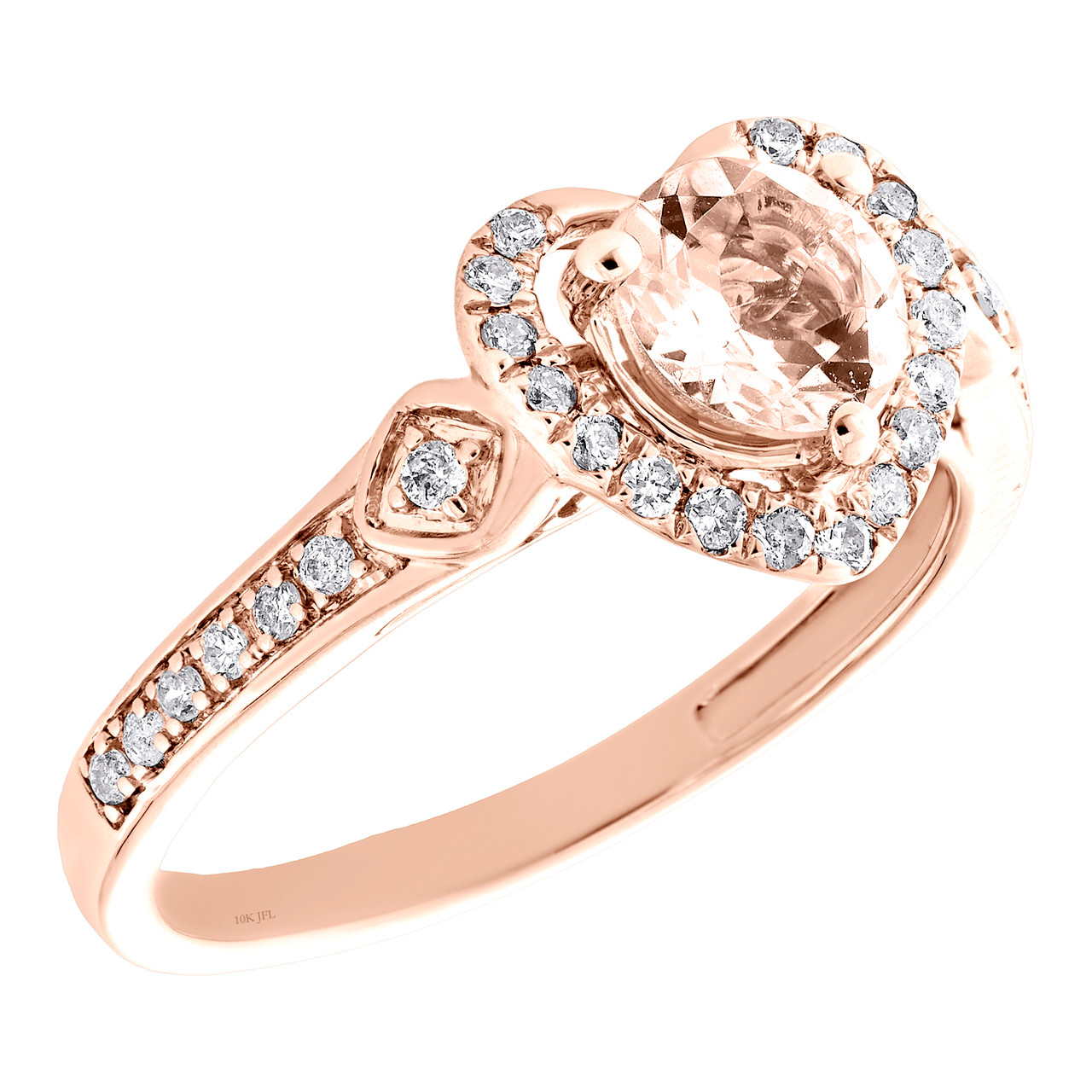 - 10K Rose Gold Diamond & Solitaire Morganite Heart Halo Engagement Ring 1.75 TCW