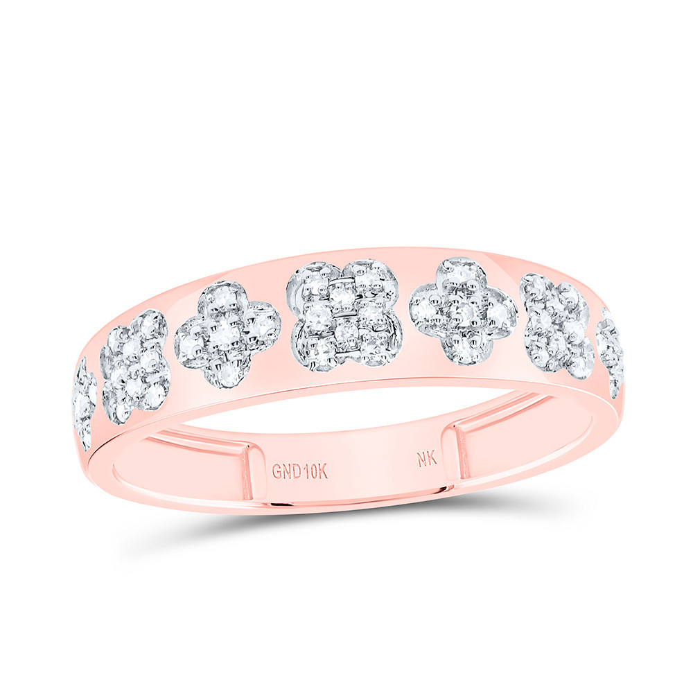 - 10K Rose Gold Natural Diamond Women's 4 Leaf Clover Ring Anniversary Band 1/6 CT