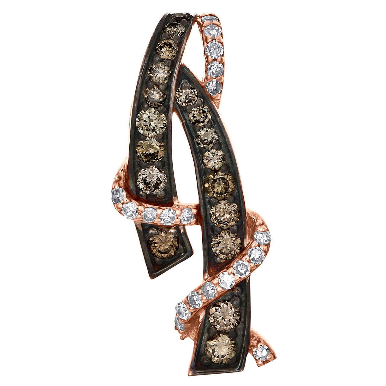 This eye-catching genuine diamond Swirl Bar Diamond Pendant is casted in 10K Rose Gold and shimmering White and Brown genuine diamonds, ensuring sparkle from every angle. Radiant with 3/8 ct. t.w. of genuine diamonds, this pendant is high-polished to lustrous shine. Exclusive style has well built frame, to withstand everyday wear and tear. The diamonds are securely held in Pave and Prong setting, making the overall appearance larger and lustrous. Slide / Hidden bail to complete the exclusive style. These are all 100% genuine full cut round diamonds of matching quality throughout. This pendant is 1.5 gr. and 0.85" in length. This will be a great addition to your growing jewelry collection.