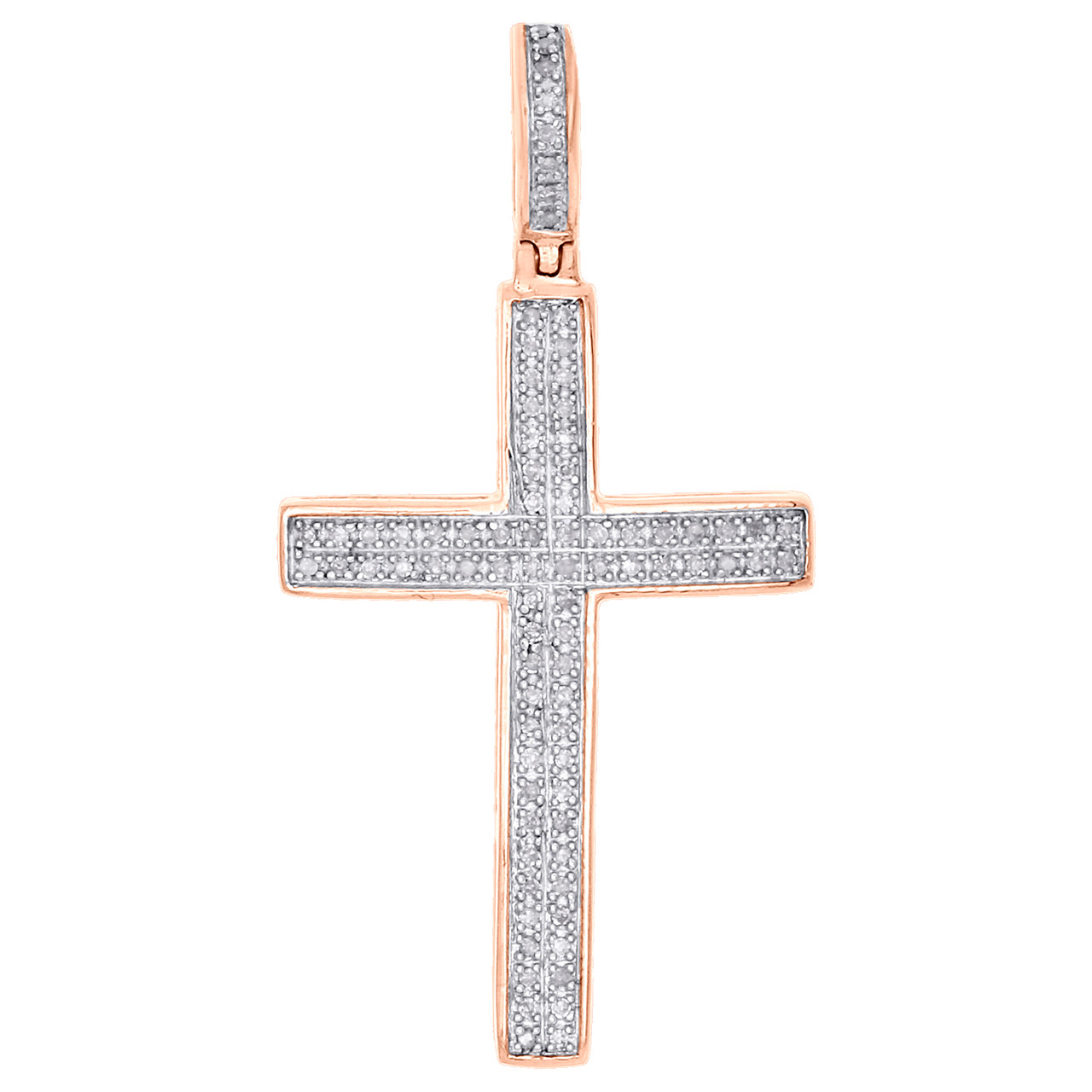(1.80 gr. of 10K Rose Gold | Total Carat Weight: 0.25 ct. t.w. of White Diamonds | Length: 1.40" (including bail) | Width: 0.80" | Thickness: 2.50mm | Clarity: I1 - I3 | Color: J - K | Unisex Genuine Diamond Dome Religious Cross Pendant Pave Charm)