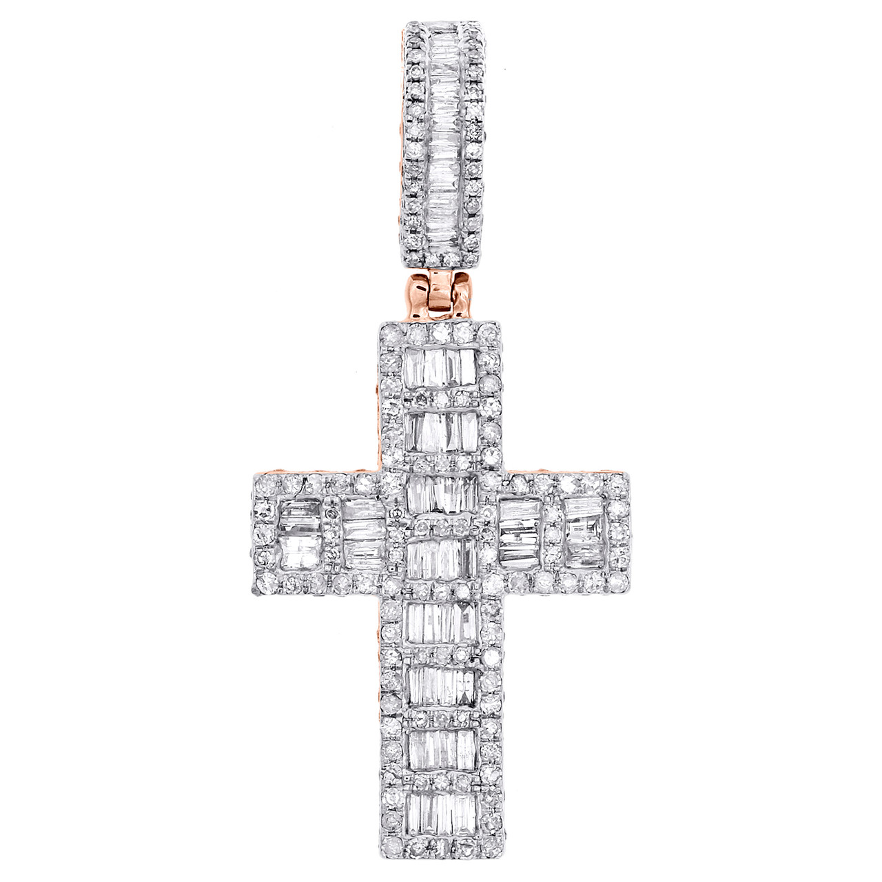(5.1 gr. of 10K Rose Gold | Total Carat Weight: 1.62 ct. t.w. of White Diamonds | Length: 1.75" (Including Bail) | Width: 0.80" | Clarity: SI2 - I1 | Color: G - H | Men's Genuine Round and Baguette Diamond Statement Cluster Cross Pendant Fancy Charm)