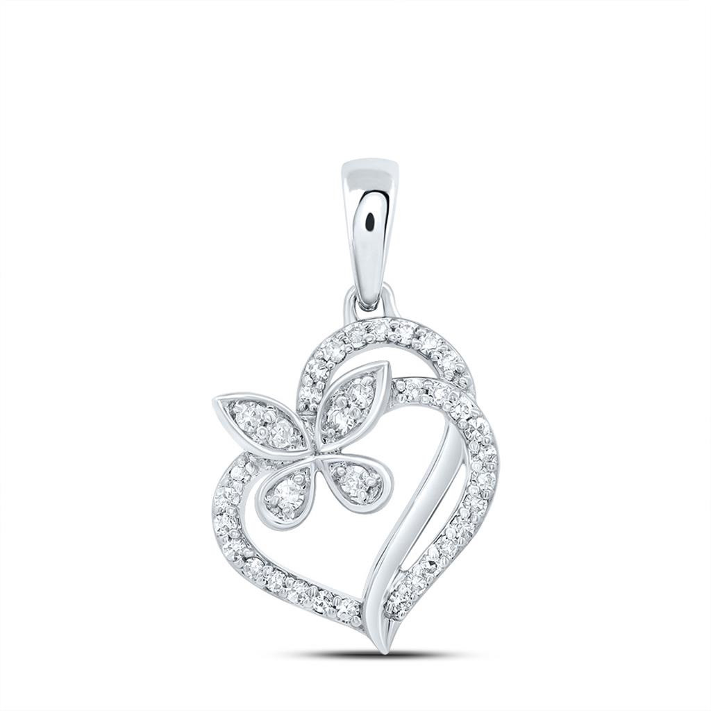 (1 gr. of 10K Rose Gold | Total Carat Weight: 0.13 ct. t.w. of White Diamonds | Length: 0.70" (including bail) | Width: 0.40" | Clarity: I1 - I2 | Color: H - I | Unisex Earth Mined Natural Diamonds Heart and Butterfly Diamond Statement Pendants)