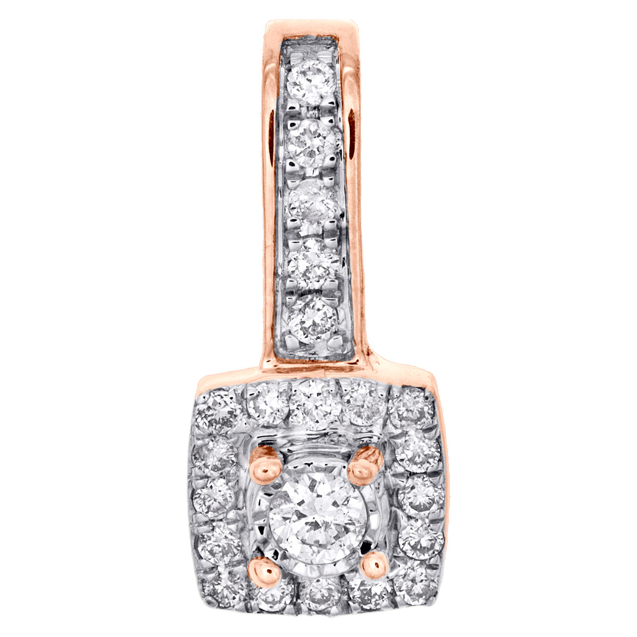 (0.80 gr. of 10K Rose Gold | Total Carat Weight: 0.20 ct. t.w. of White Diamonds | Length: 0.60" (including bail) | Width: 0.25" | Clarity: SI2 - I1 | Color: H - I | Genuine Diamond Solitaire Halo Cluster Pendant Fancy Statement Slide Charm)
