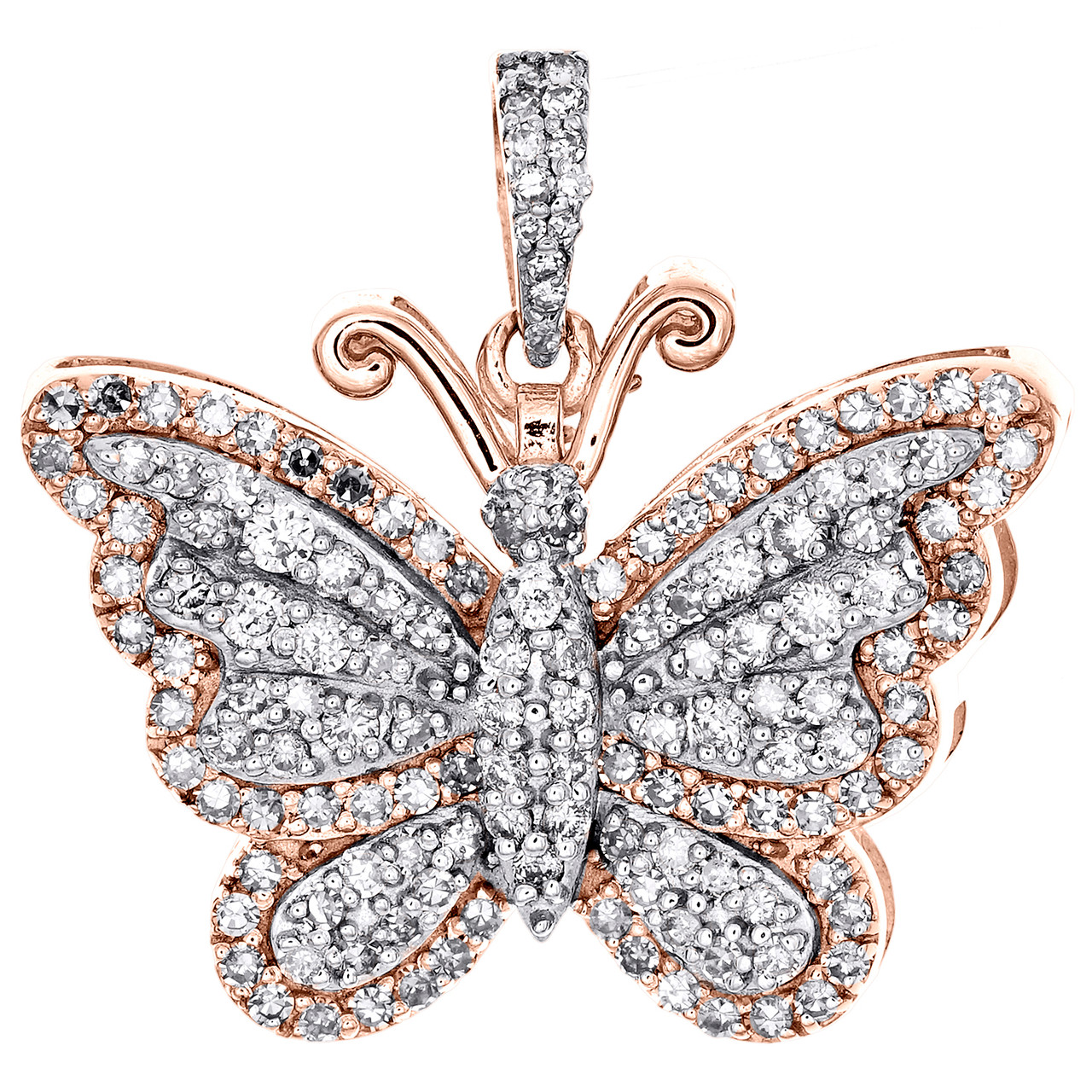 (3.8 gr. of 10K Rose Gold | Total Carat Weight: 0.75 ct. t.w. of White Diamonds | Length: 0.85" (including bail) | Width: 0.90" | Thickness: 5mm | Clarity: I1 - I2 | Color: H - I | Women's Genuine Round Diamond Butterfly Themed Pendant Statement Charm)