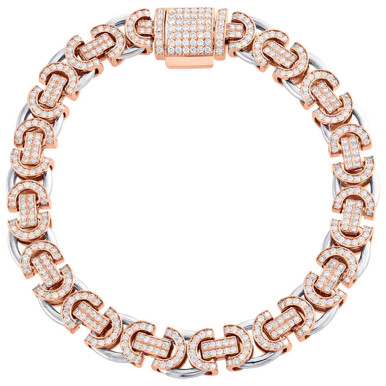 (47.5 gr. of 10K White / Rose Gold (two tone) | Total Carat Weight: 4.80 ct. t.w. of Round Cut White Diamonds | Length: 8.75" | Width: 9.60mm | Clarity: SI2 - I1 | Color: F - G | Men's Solid Two Tone Fancy Byzantine Link Genuine Round Cut Diamond Statement Bracelet with Fancy Box Clasp Closure)