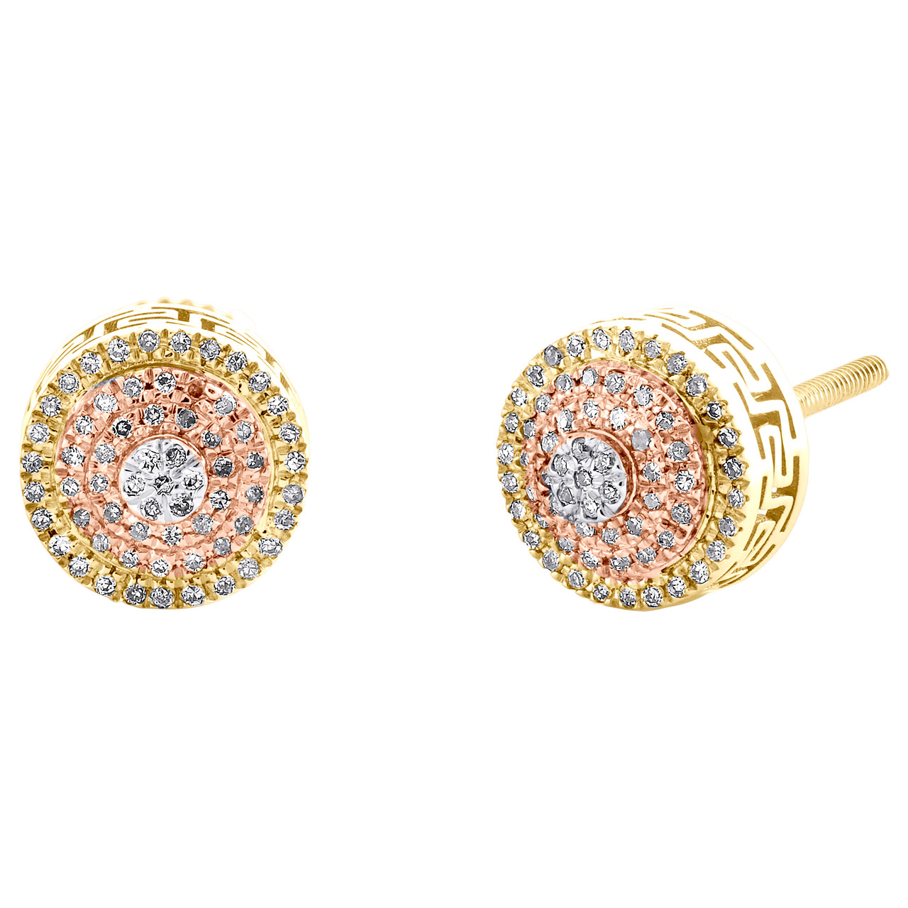 10K Tri-Tone Gold Diamond Unisex 9mm Tiered Round Halo Stud Earrings 0.15 CT