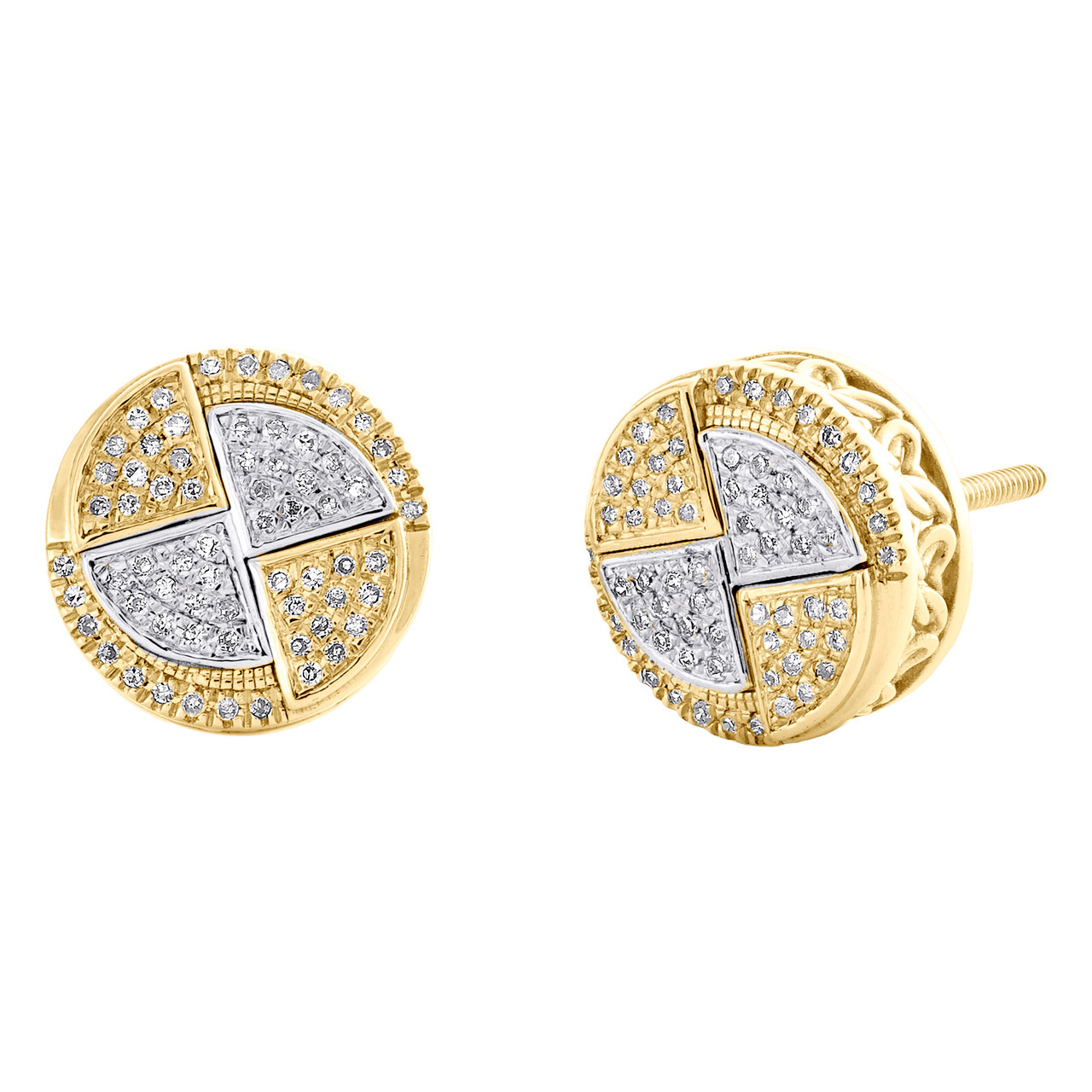 - 10K Two Tone Gold Diamond 10mm Spiral Pie Slice Geometric Stud Earrings 0.17 CT