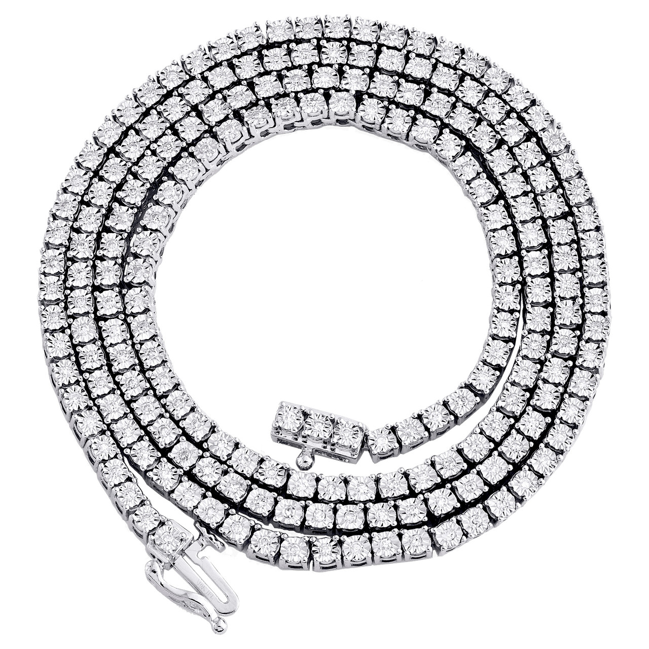 (25.5 gr. of 10K White Gold | Total Carat Weight: 1.33 ct. t.w. of White Diamonds | Length: 22" | Width: 3mm | Clarity: I1 - I2 | Color: H - I | Men's Genuine Round Cut Chain Necklace Bezel / Miracle Setting 4-Prong Statement Necklace)
