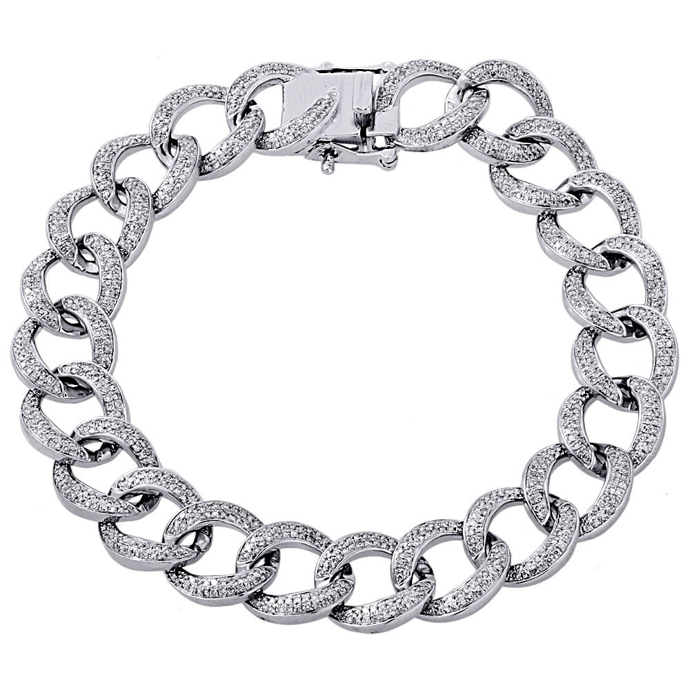(24.3 grams of 10K white gold | 3.15 total carats of white diamonds; 8" inches long & 12mm wide | SI2 - I1 Clarity Diamond | H - I Color | Open Link Miami Cuban Bracelet in Pave setting)
