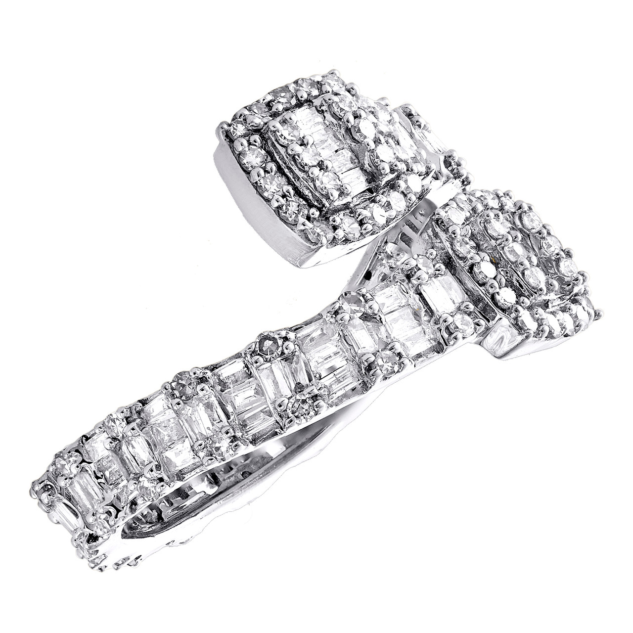 10K White Gold Baguette Diamond Bypass Eternity Cocktail Right Hand Ring 1 Ct.