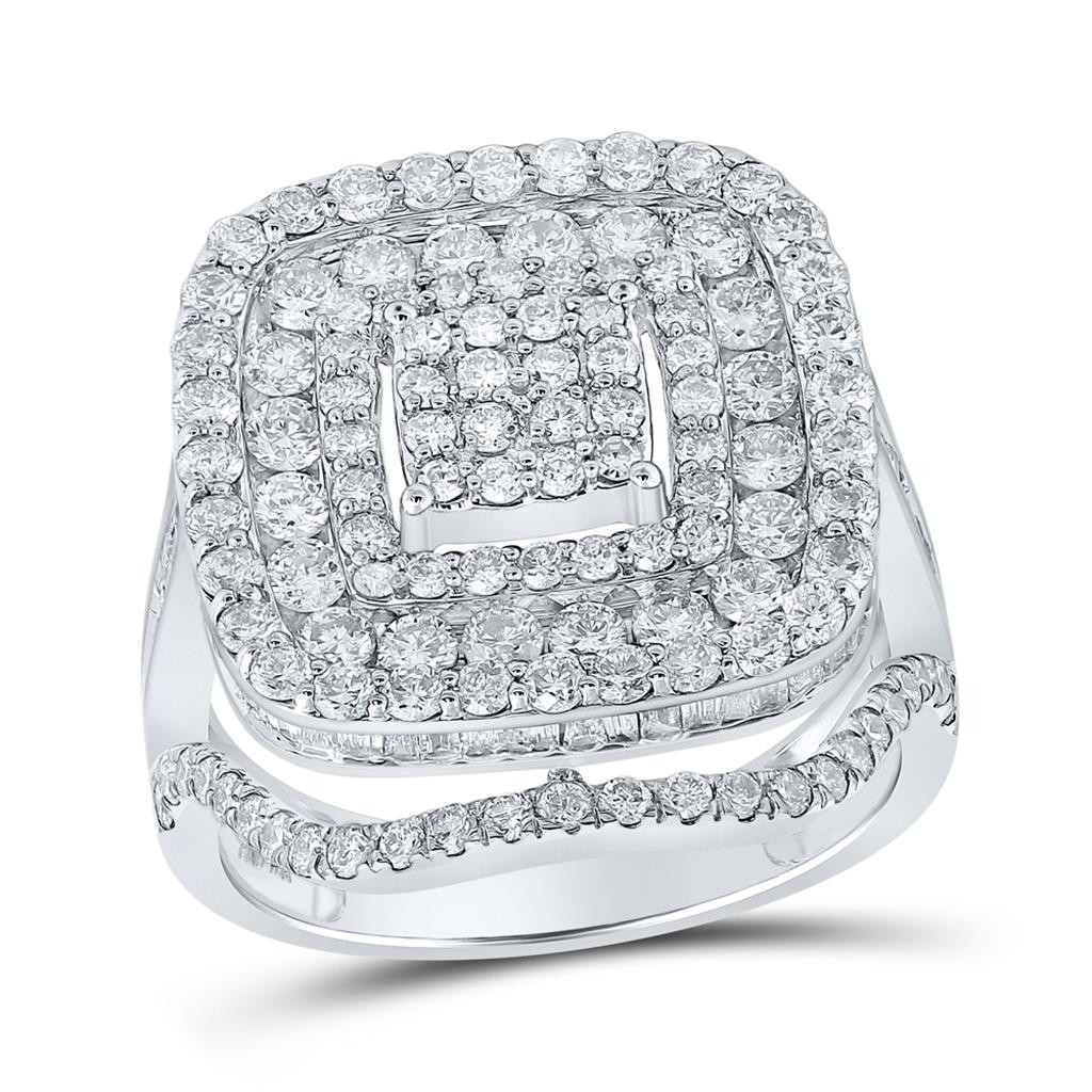 - 10K White Gold Baguette Diamond Split Shank Big Square Cocktail Ring 2.75 CT
