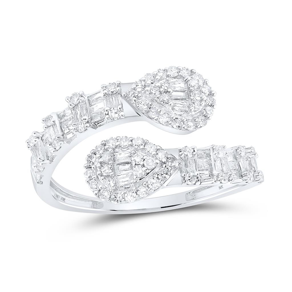 - 10K White Gold Baguette Diamond Women's Bypass Teardrop Cuff Band Ring 5/8 CT