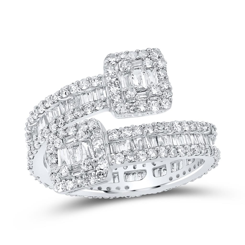 10K White Gold Baguette Diamond Women's Eternity Square Cuff Band Ring 1.50 CT