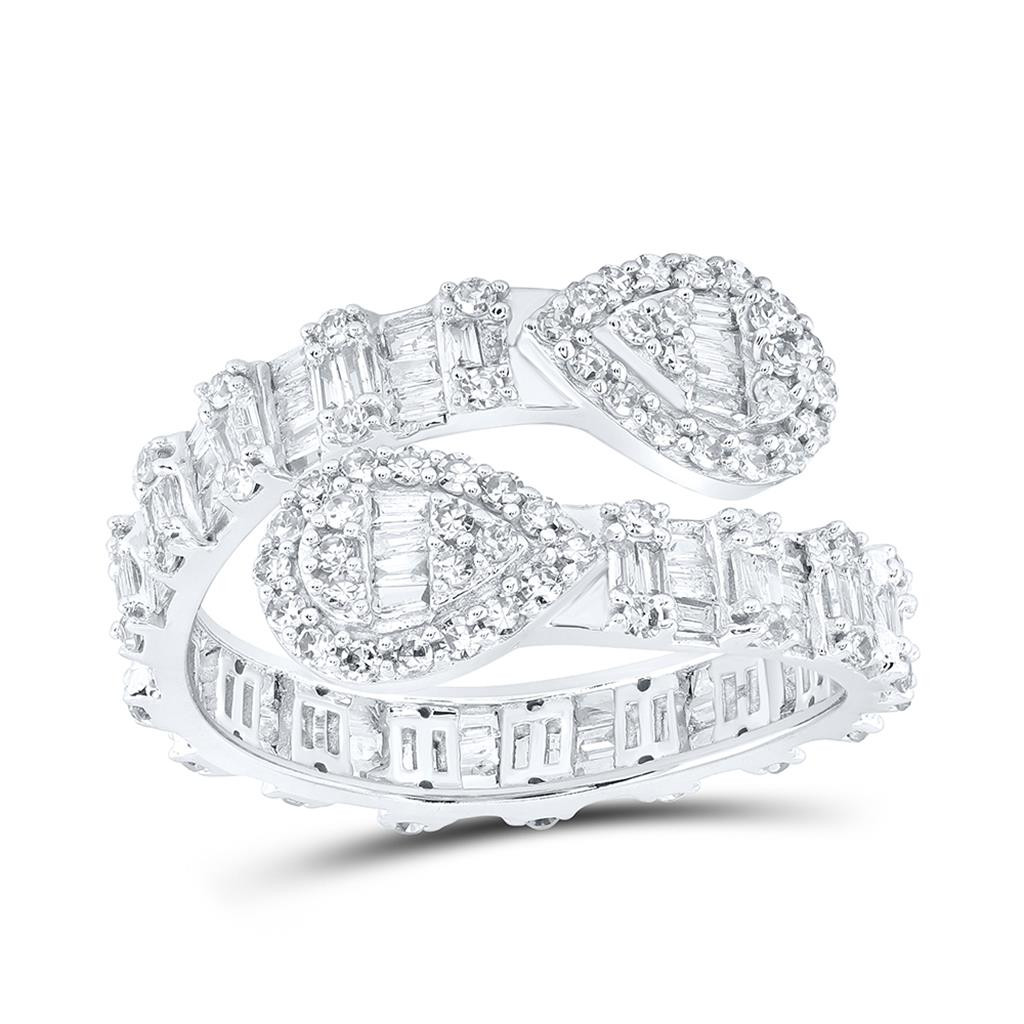 - 10K White Gold Baguette Diamond Women's Eternity Teardrop Cuff Band Ring 1 CT