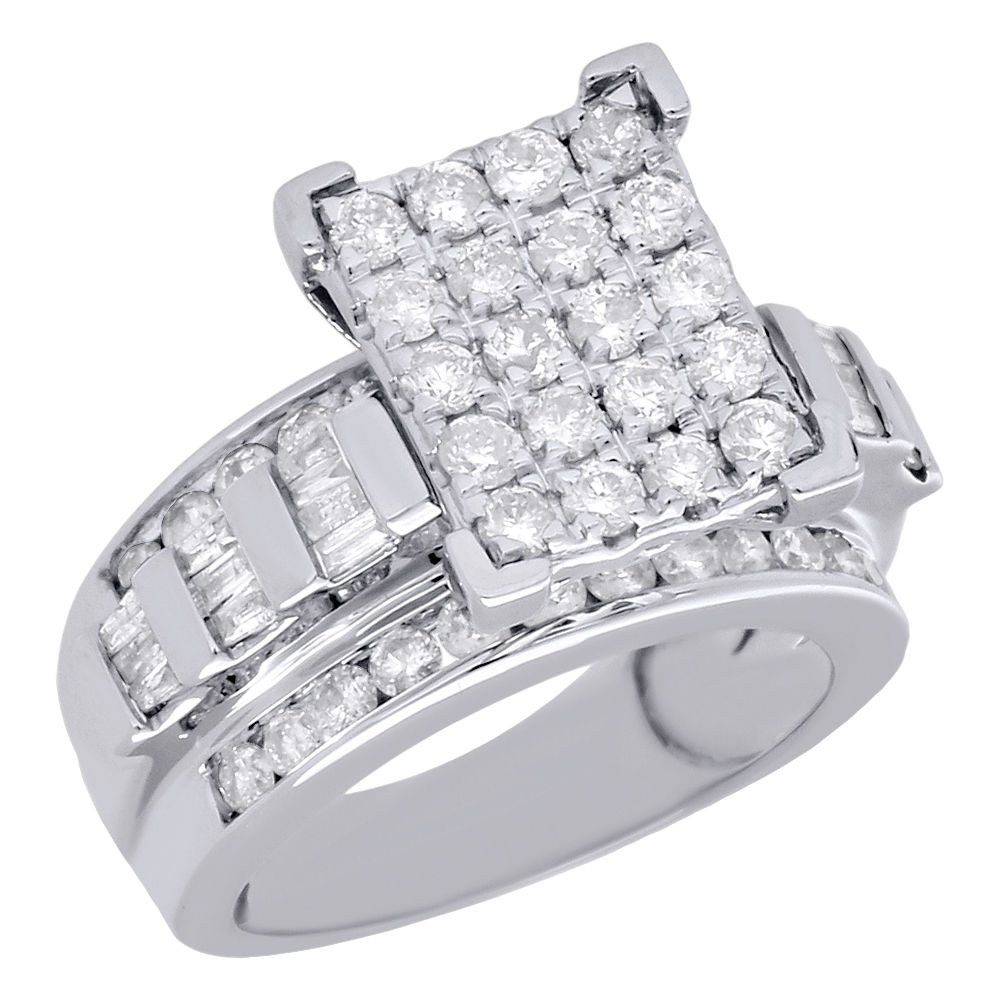 10K White Gold Baguette & Round Diamond Rectangle Ladies Engagement Ring 2 Ct.