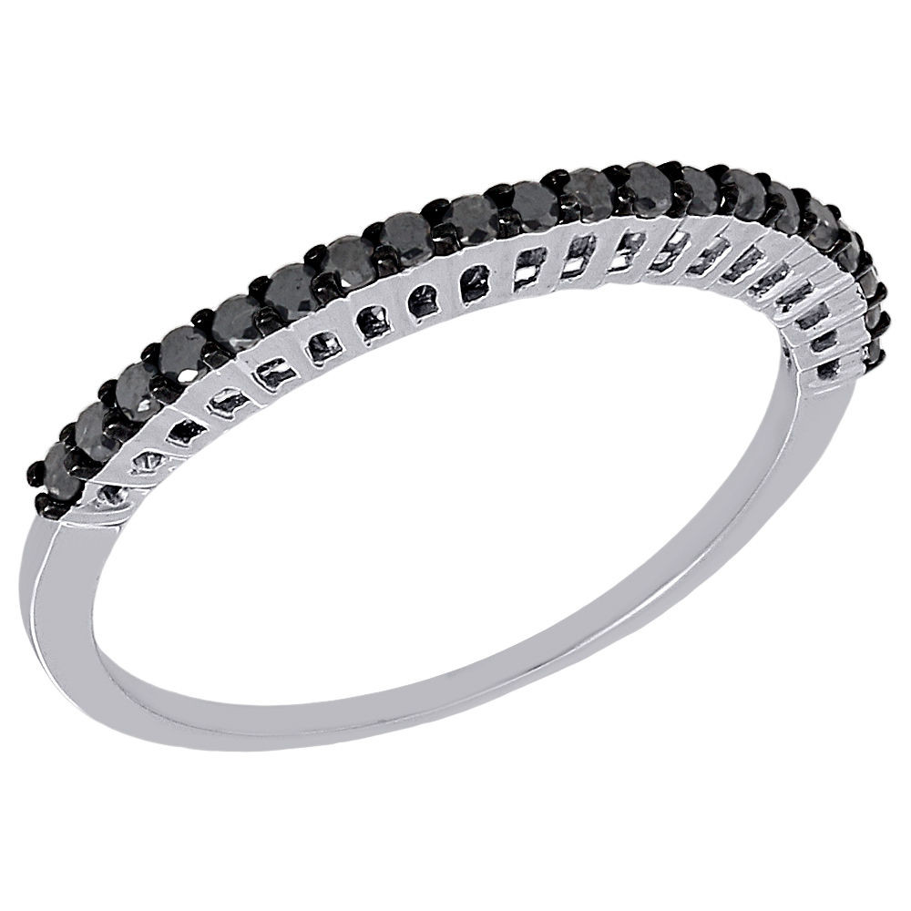 10K White Gold Black Diamond Anniversary Prong Set Wedding Band Ring 0.25 Ct.