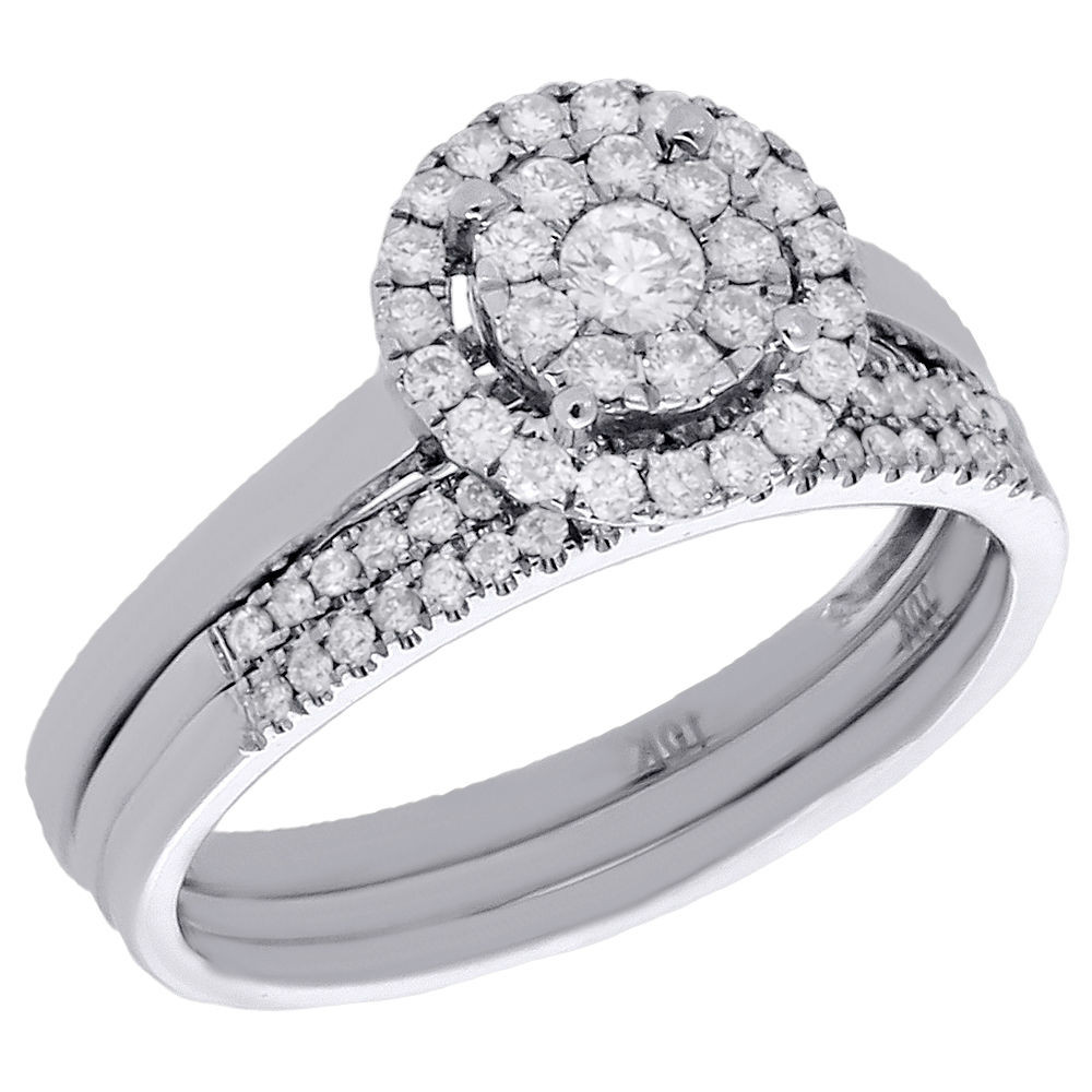 10K White Gold Diamond 3 Piece Flower & Halo Engagement Ring Bridal Set 1/2 Ct.