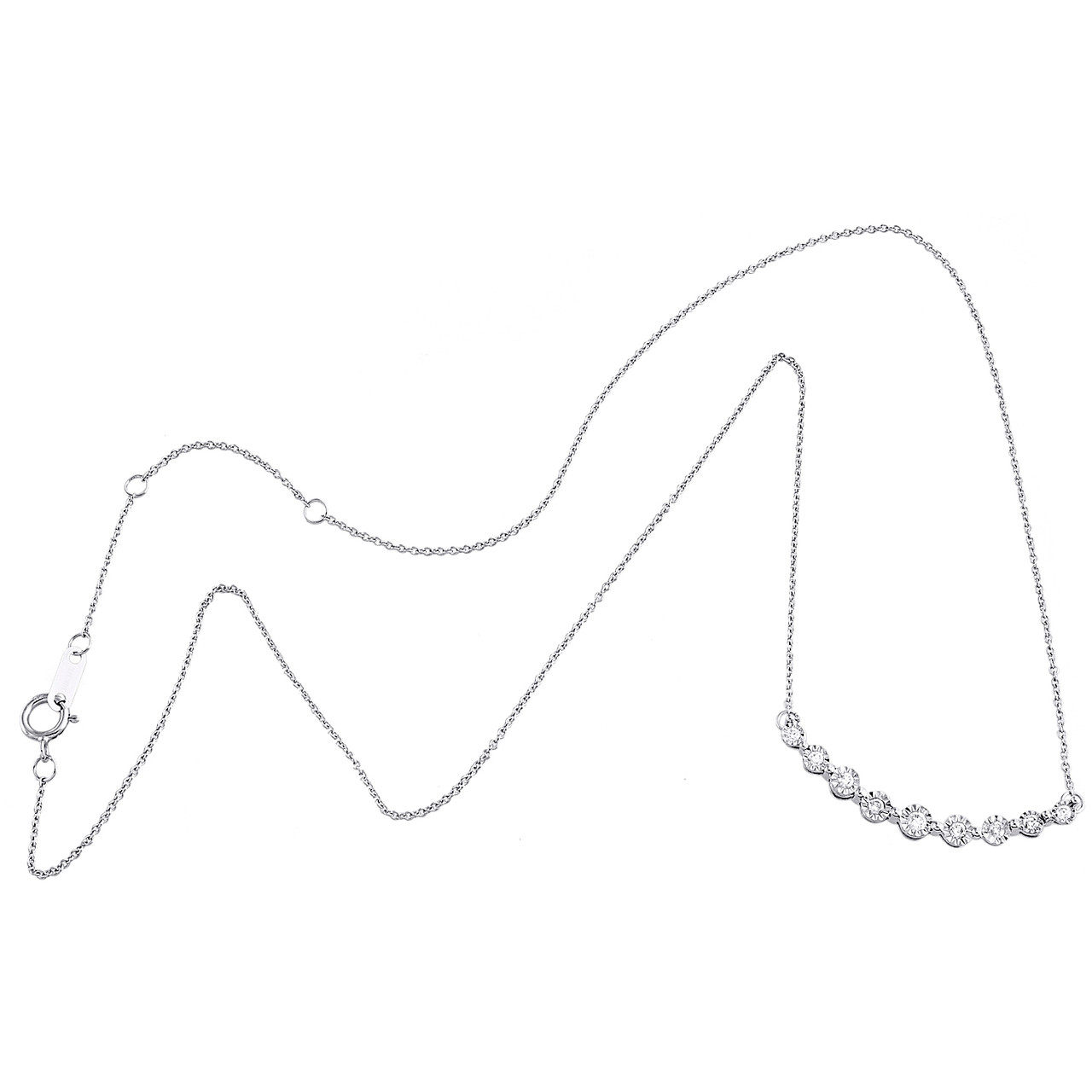 10K White Gold Diamond Graduated Bar Necklace Curved Station Chain 18" 0.20 Ct.