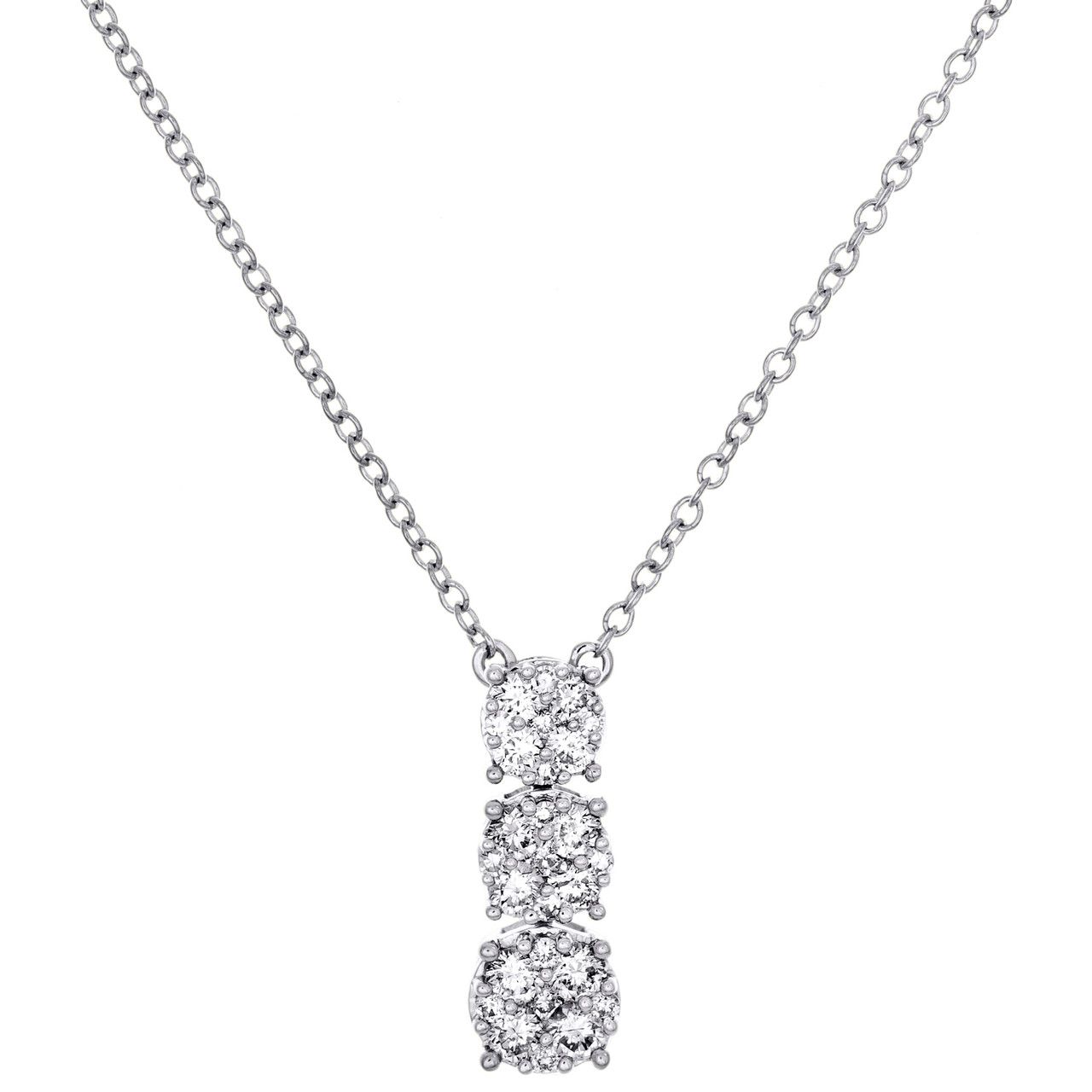 10K White Gold Diamond Graduated Cluster Necklace 18" Rolo Cable Chain 1/2 CT.