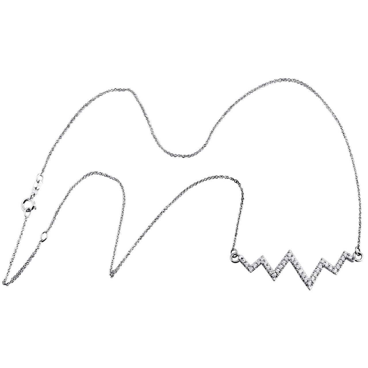 10K White Gold Diamond Heart Beat Wave Necklace 20" Cable Link Chain 0.50 CT.
