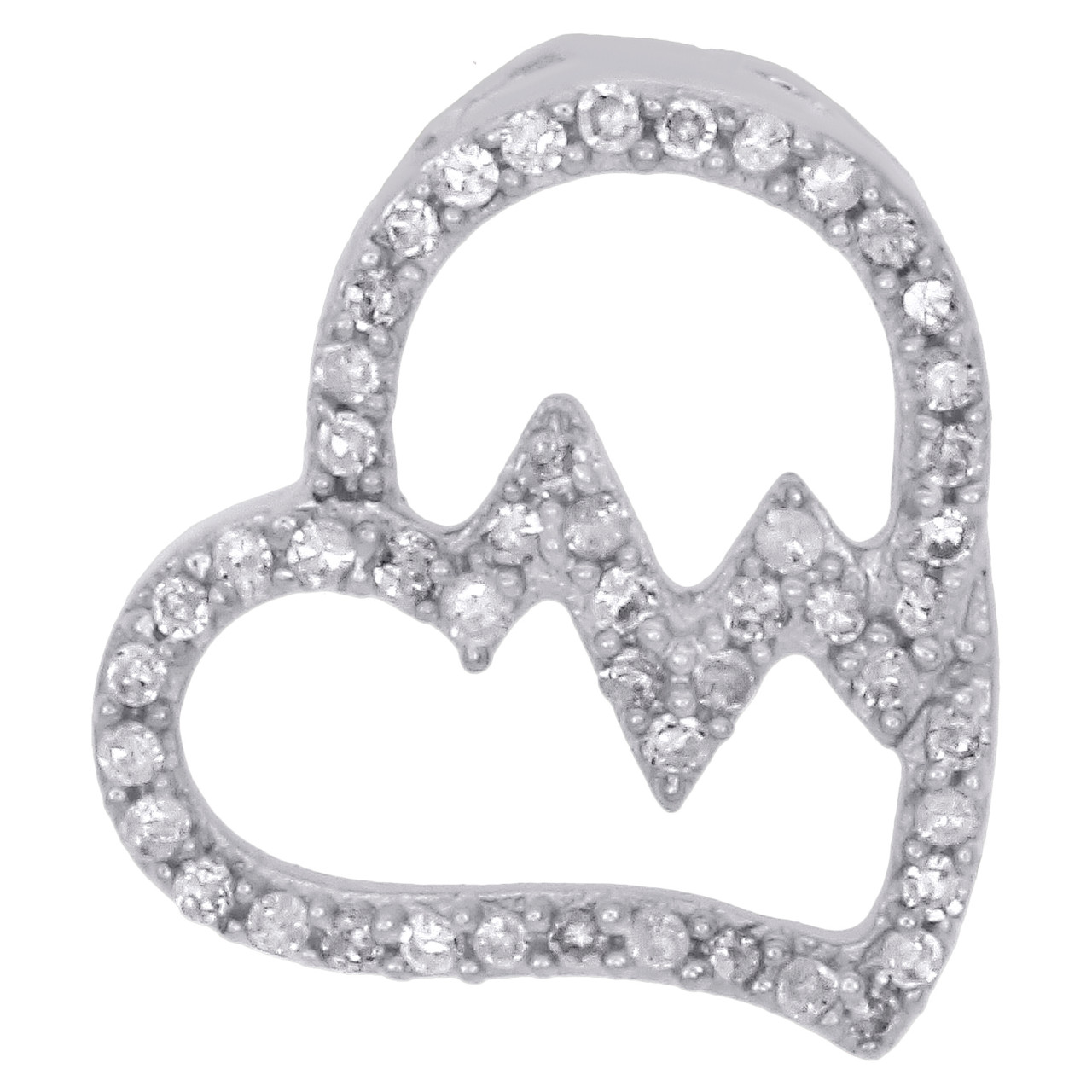 - 10K White Gold Diamond Tilted Heart Pendant 0.50" Heartbeat Slide Charm 1/6 CT.