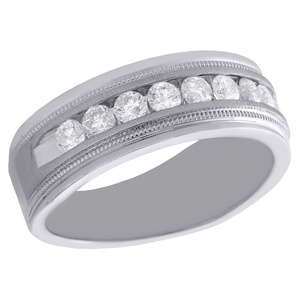 (7.9 grams of 10K White Gold | 1.00 ct. total weight of white diamonds | 7.55mm band width | SI2 - I1 Clarity | H - I Color | Men's Round Diamond Channel Set Wedding Band Ring)