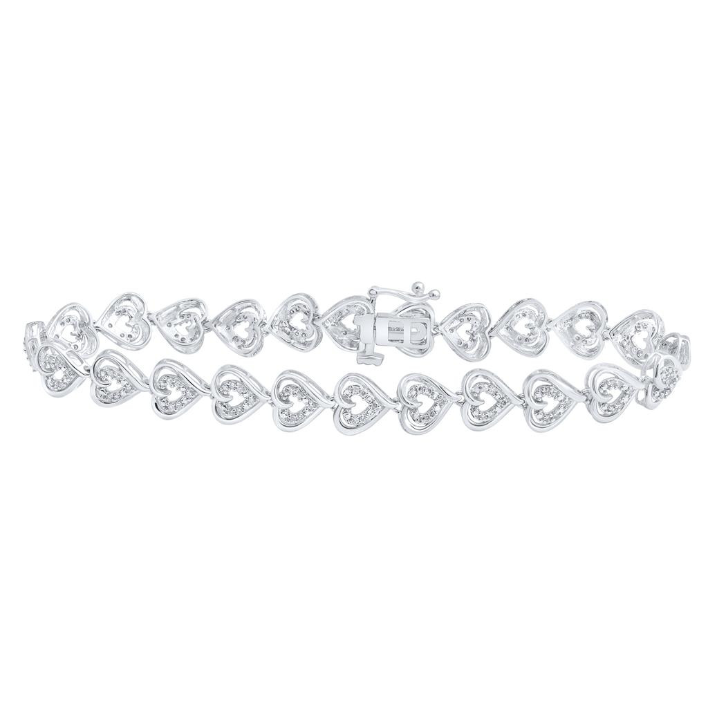 - 10K White Gold Diamond Women's Fancy Heart Link Tennis Bracelet 1/2 CT | 7.25"