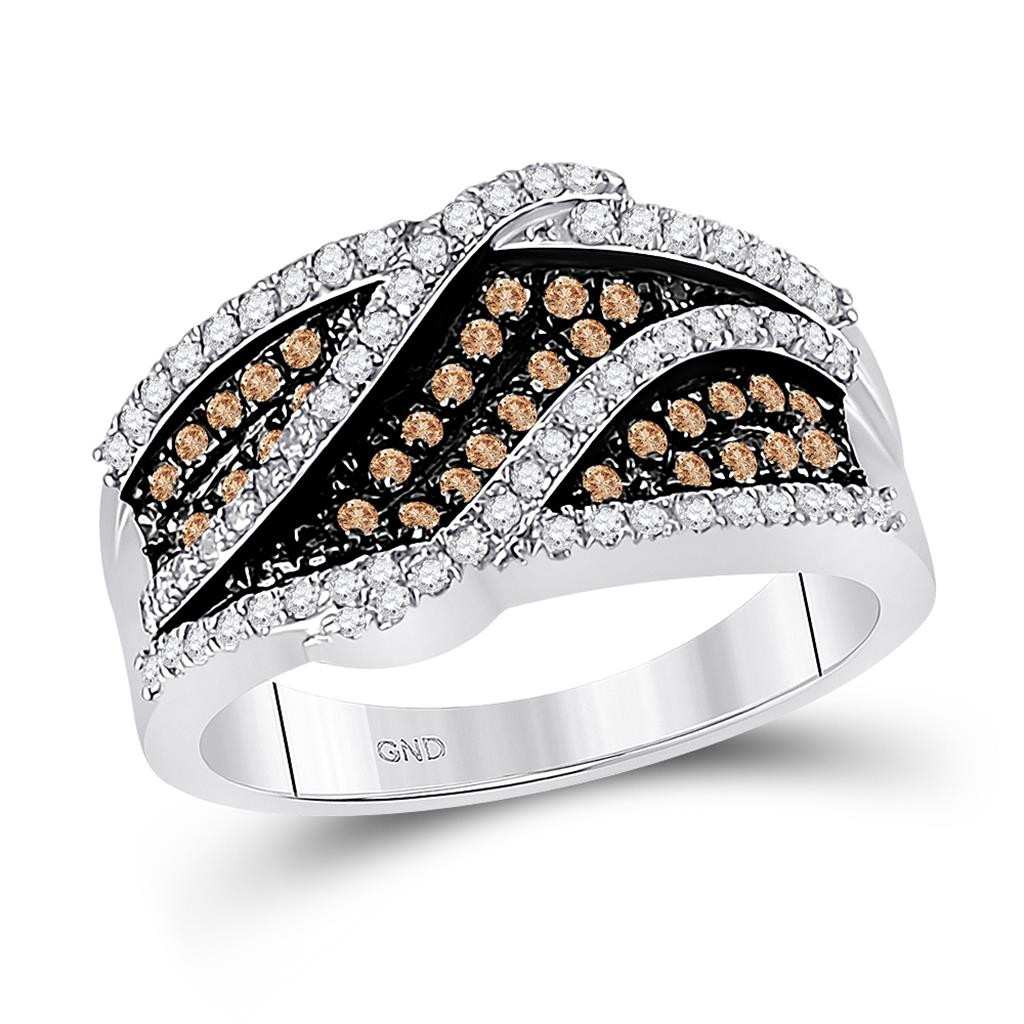 - 10K White Gold Genuine Brown Diamond Women's Crossover Cluster Band Ring 3/4 CT