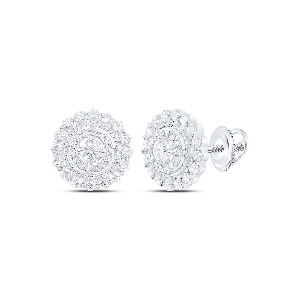 10K White Gold Genuine Diamond Unisex Tiered Solitaire Circle Stud Earrings 1 CT