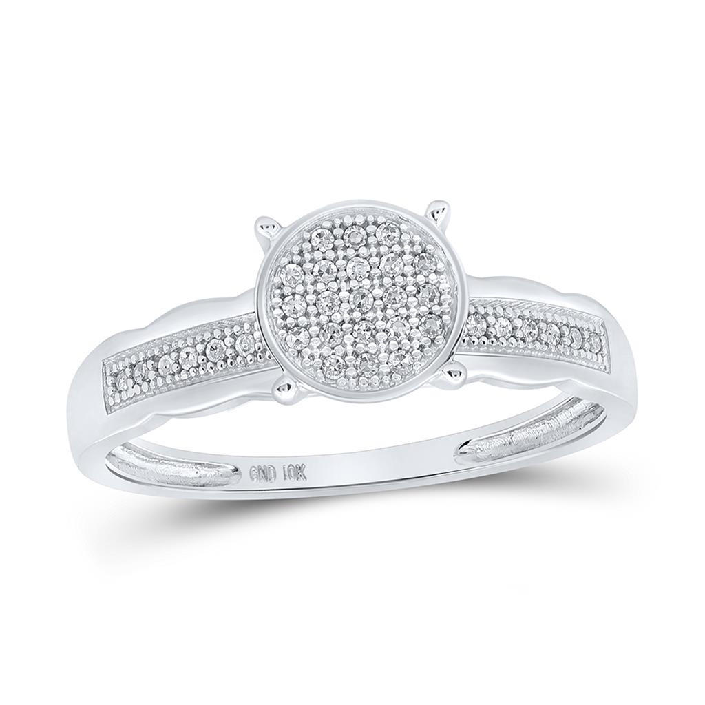 - 10K White Gold Genuine Diamond Women's Wavy Shank & Round Cocktail Ring 1/10 CT