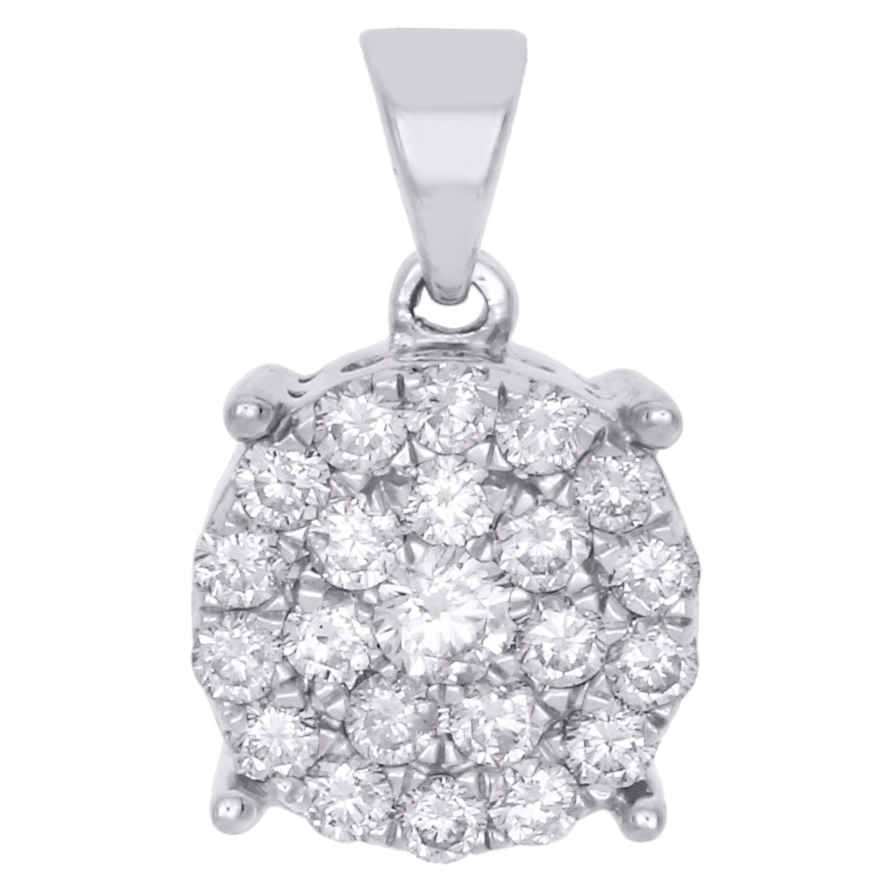 (2.3 gr. 10k White Gold | Total Carat Weight: 1 ct. t.w. of White Diamonds | Length: 0.75" (including bail) | Width: 0.45" | Clarity: SI2 - I1 | Color: H - I | Women's Real Genuine Diamond 4-Prong Circle Shaped Fancy Statement Pendant Prong Set Charm)