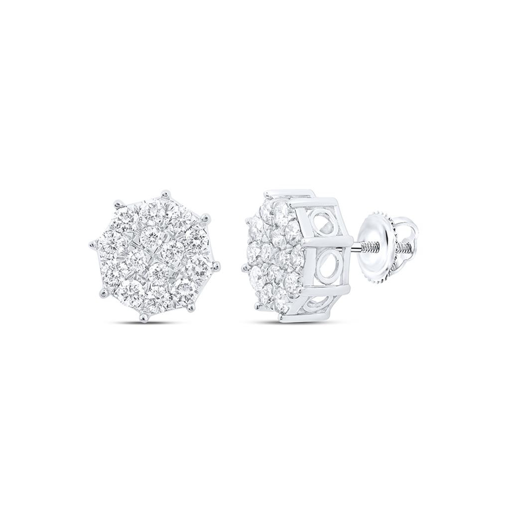 - 10K White Gold Genuine Round Diamond Unisex Star Octagon Stud Earrings 7/8 CT
