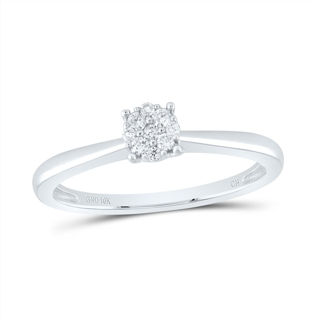 - 10K White Gold Genuine Round Diamond Women's Cluster Flower Promise Ring 1/6 CT