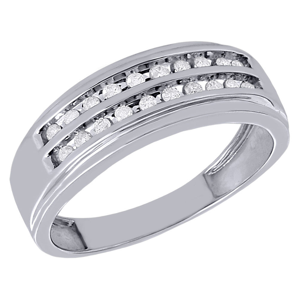 - 10K White Gold Mens Diamond Wedding Band 8mm Channel Set Engagement Ring 1/4 Ct.