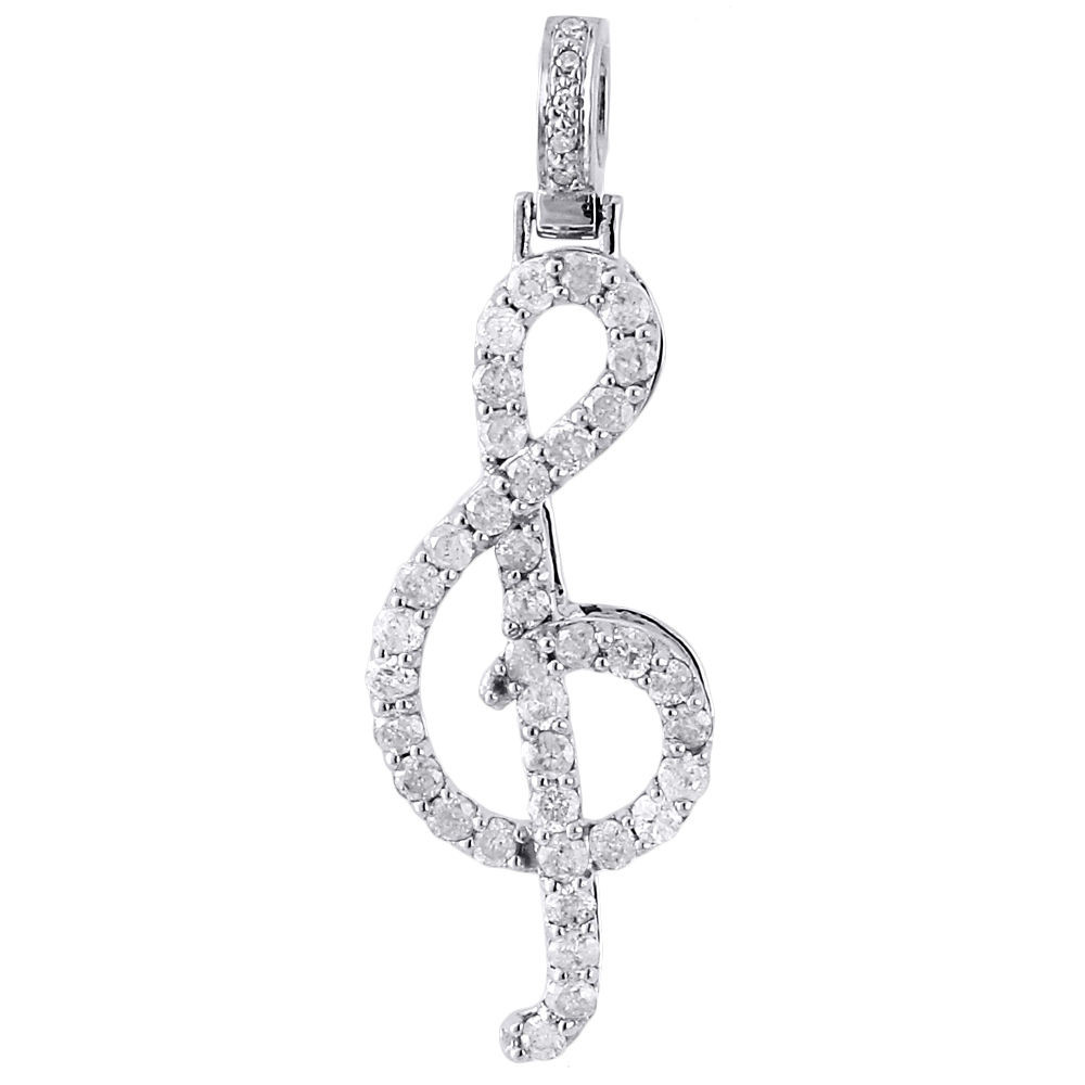This eye-catching "Treble clef" musical note is crafted in cool 10K white gold and shimmering diamonds, ensuring sparkle from every angle. Radiant with 1 ct. total weight of genuine diamonds and polished to a brilliant shine. This pendant weighs at approximately 1.90 grams of gold. The diamonds are securely held between the gold mounting in pave setting. All the diamonds are of same clarity and color throughout. The diamonds are set to allow for uniformity and consistency.