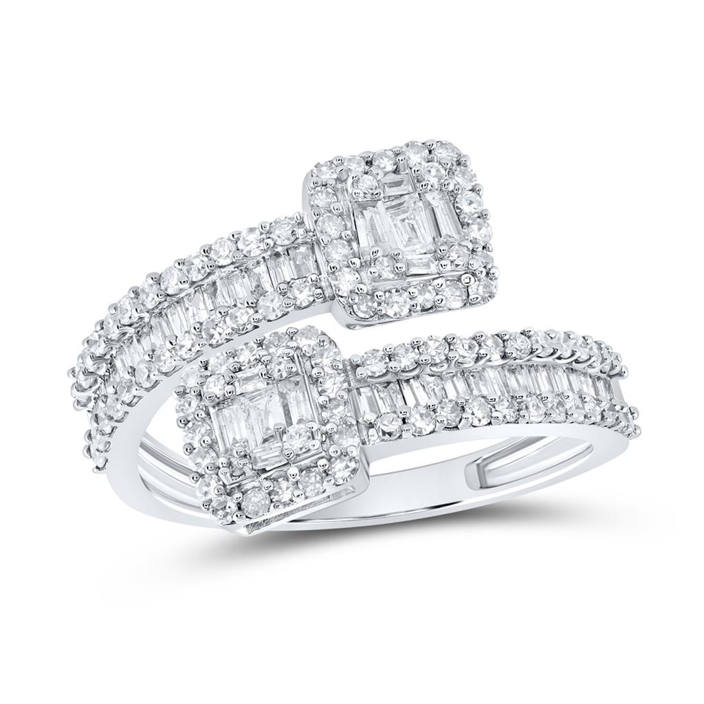 - 10K White Gold Real Baguette Diamond Women's Bypass Square Cuff Band Ring 1 CT