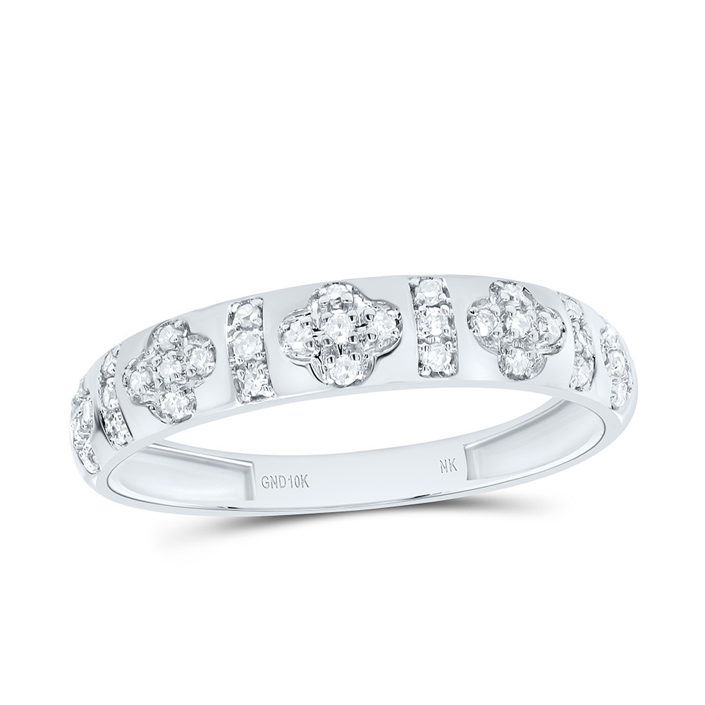 (1.38 gr. of 10k White Gold | Total Carat Weight: 0.17 ct. t.w. of White Diamonds | Width: 4mm | Clarity: I1 - I2 | Color: H - I | Women's Round Cut Diamond 4 Leaf Clover Stackable Band Ring)