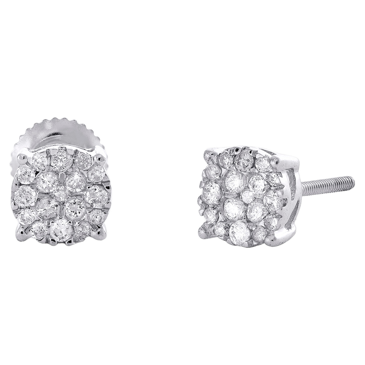 10K White Gold Real Diamond Unisex 6.35mm 4 Prong Circle Stud Earrings 0.36 CT