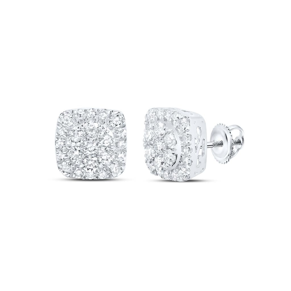 - 10K White Gold Real Diamond Unisex 9mm Cluster Halo Square Stud Earrings 5/8 CT