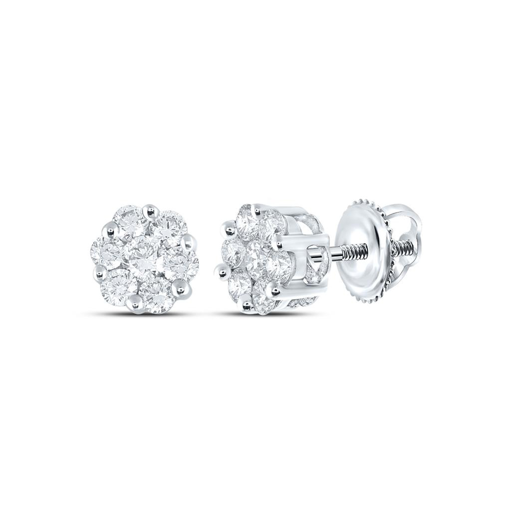 - 10K White Gold Real Diamond Unisex Floral 5.5mm Flower Set Stud Earrings 1/2 CT