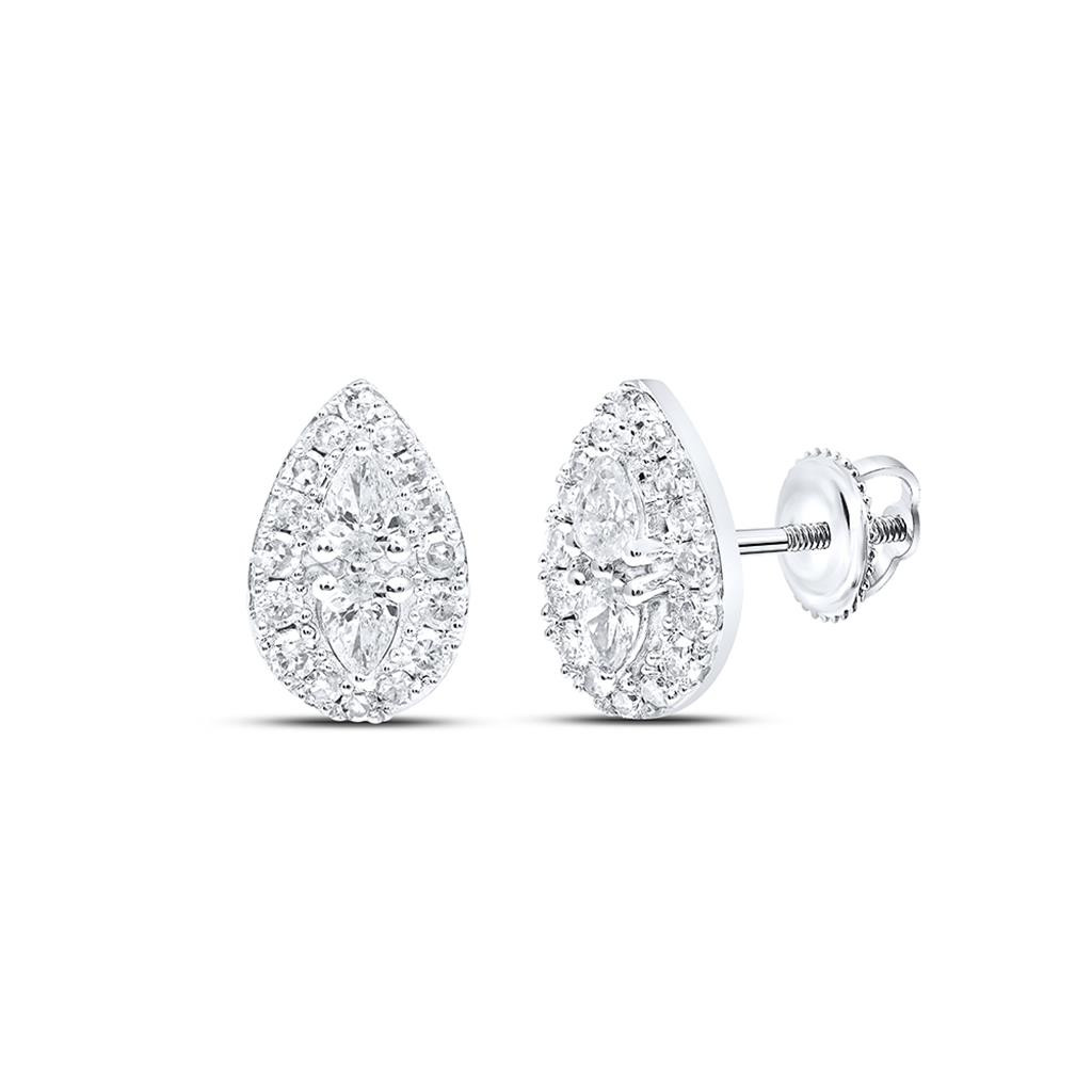 - 10K White Gold Real Pear Diamond Women's Cluster Teardrop Stud Earrings 3/8 CT