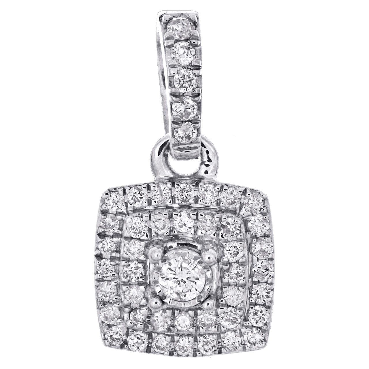 (0.80 gr. of 10K White Gold | Total Carat Weight: 0.25 ct. t.w. of White Diamonds | Length: 0.65" (including bail) | Width: 0.35" | Clarity: SI2 - I1 | Color: H - I | Genuine Diamond Solitaire Halo Frame Cluster Pendant Fancy Statement Slide Charm)